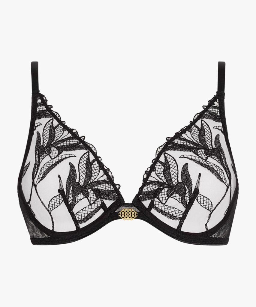 Designed for seduction and comfort, this line plays with the transparency of delicate tulle, while triple straps add