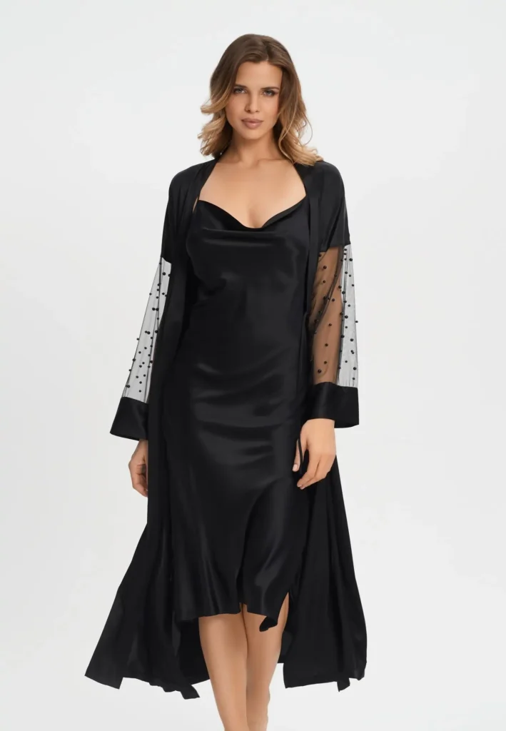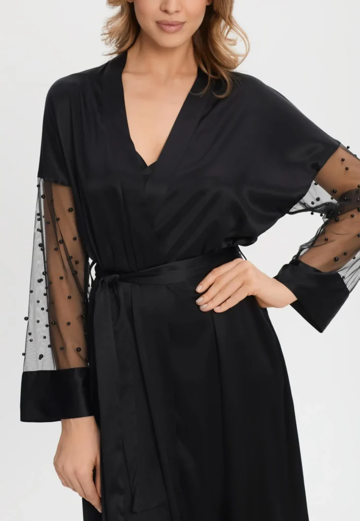 siidist hommikumantel pärlitega / long silk robe with pearls